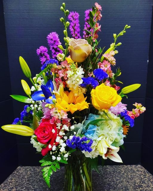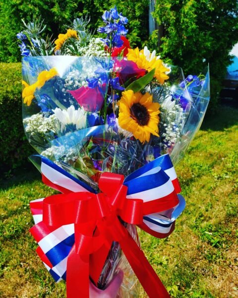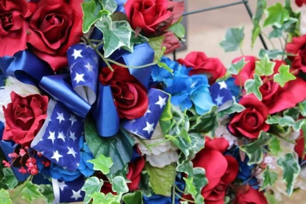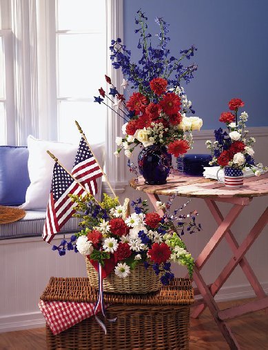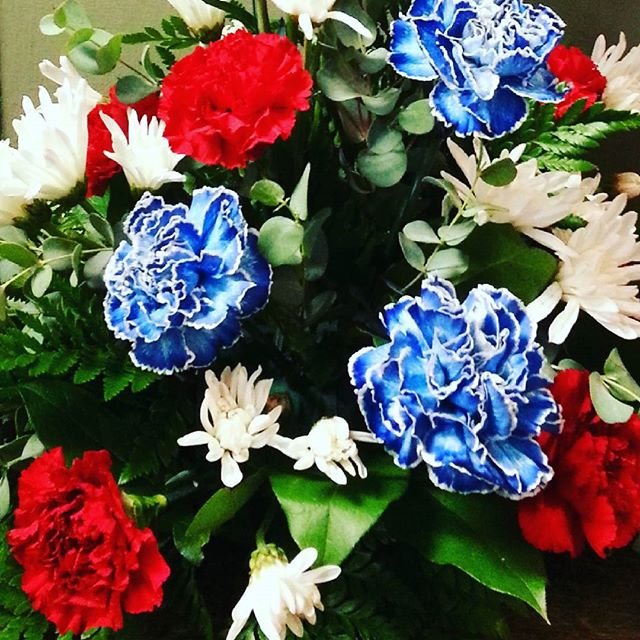 Red, white and blue flower arrangement